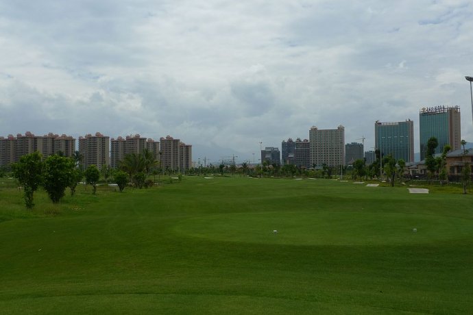 打球的感觉是,处处是楼房,而且是高楼大厦,这靠球场卖房子的利欲之心似乎太赤裸裸的了,反倒是那些只盖底层别墅的球场,看起来还顺眼点。