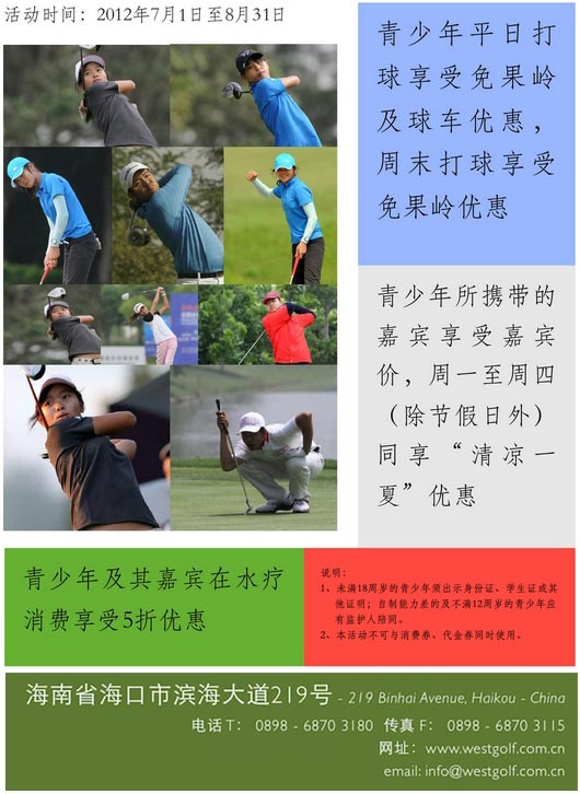 免果岭费 海南西海岸高尔夫暑期青少年击球优惠