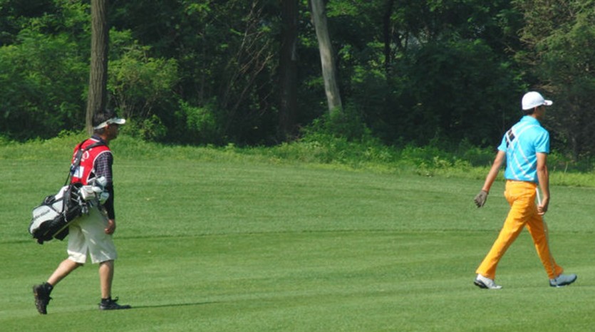 今天杨权给我当球童,他没有要小推车,自己背着球包,说是顺便练习体能,这的确给了我不小的压力。