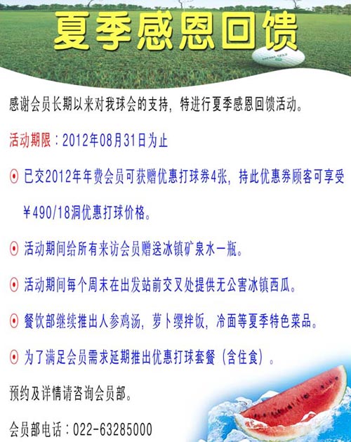 490元/18洞 天津阿罗马高尔夫夏季感恩回馈