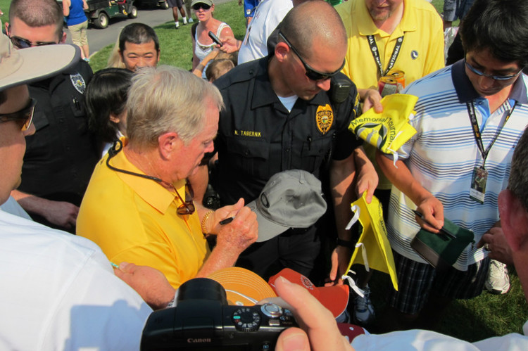 后来我才知道,刚才给我签名的是在泰格伍兹前,在美国职业高尔夫球赛中创下高尔夫球界“神话”的球星———杰克 尼克劳斯,我居然有眼不识泰山。也不赖。