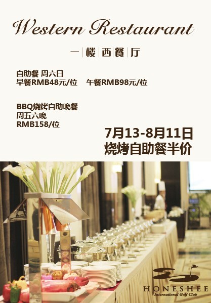 半价自助晚餐 北京鸿禧高尔夫西餐周五、六优惠
