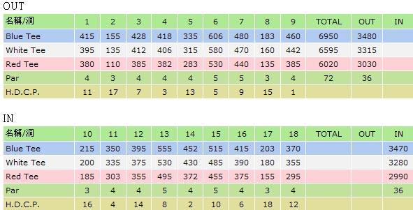 经过数十年来的发展,淡水球场随着时代而有所变动,目前球场全长6,950码,标准杆七十二杆。球场在风和树的交织,以及和缓起伏的地形,加上远方不时露出淡水河和观音山的美景,让球友在面对变化多端的挑战过程中多了几分的闲情意致。这是台湾最古老的球场,下次不妨带着几许的朝圣心情,前来一窥球场的面貌。