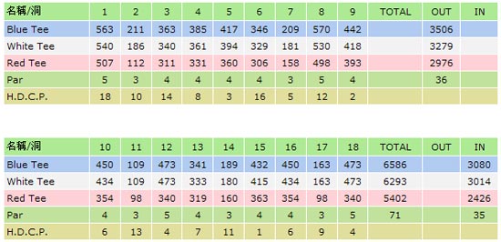 球道长度:6,586码(10-12洞打两次)