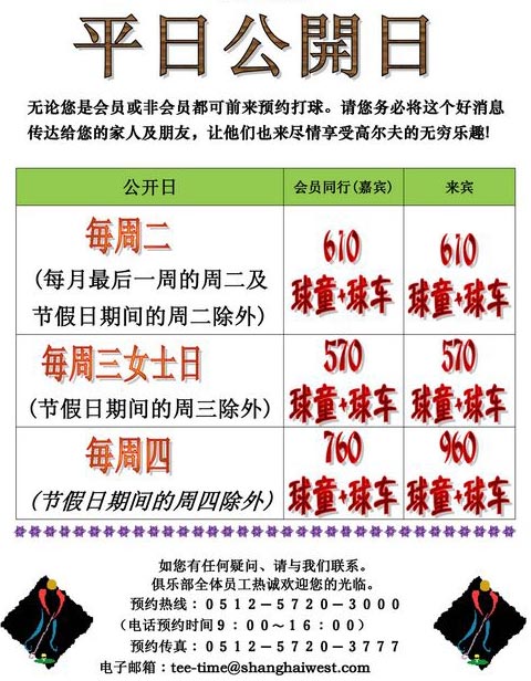 周三570元 上海光明俱乐部公开高尔夫日优惠