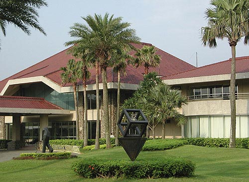 红瓦白墙的会馆占地宽广,且设施一应俱全,能让球友在挥汗十八洞之后,有个舒舒服服的第十九洞。