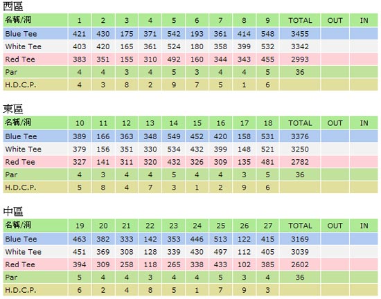 球道长度: 西区:3455码,东区:3376码,中区:3169码