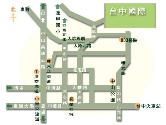位于台中市大坑附近山区,邻近大坑风景区的台中国际高尔夫俱乐部,是台中市区唯一的一座高尔夫球场,离繁忙的市中心不过二十分钟车程。球场占地120公顷,由英国名设计师Dave Thomas(戴夫·托马斯)所操刀设计,东、中、西区二十七洞球道坐落在幽静的山林幽谷间,沿着自然地势起伏转折,加上配置得当的沙坑与水塘障碍,还有球道两侧的树林,提供球友饶富挑战性且远离都市喧嚣的击球乐趣。