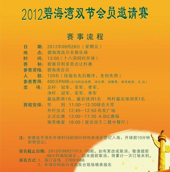 深圳碧海湾高尔夫球会2012双节会员邀请赛报名