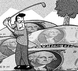 高尔夫鼓动半天,说要平民化,但我前两天在机场看见一本教材,教你正确地挥杆,定价300多元,还有一本“高尔夫规则”,一条一条给配上小画,薄薄一册子居然是128块(其实现在网络发达,所有规则都能在网上查清楚)。这样的价钱实在等于说是把“高尔夫”三个字就当是高附加值,把消费者当有钱的冤大头。曾和几个朋友去茶馆闲坐,跑堂的上来一说价码,某位朋友就急了:你这是什么价钱,欺负我们有钱是不是?