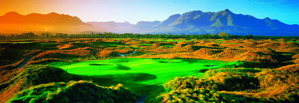 范考特林克斯的第15 洞是个非常有特点的4 桿洞,在这裡你完全可以体会到一半是水,一半是火的真正含义。没错,第15 洞半岛式果岭的一侧是沼泽地一般的水域,一半是则是长草和丘陵佔领的「魔鬼区域」。而且果岭前起伏较大且沟沟坎坎的球道,也会让你在选择落点时多了一些不确定性。如果你来南非只能选择一个地方游览的话,那麼,范考特乡村俱乐部就是你的不二之选。俱乐部位於厄尼艾尔斯(Ernie Els)的故乡乔治市(George)城郊的花园大道,依偎在群山和印度洋之间,拥有世界上最美妙绝伦的乡间景致,被评选為南非第一度假村。