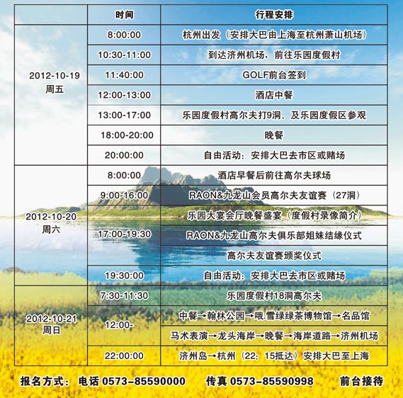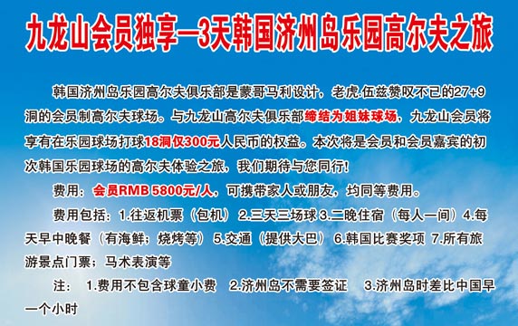 5800元/3天 浙江九龙山将军高尔夫会员济州岛之行