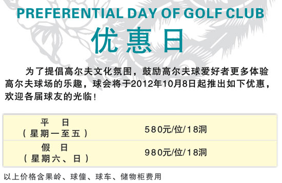 7)以上优惠由2012年10月8日起实施,如有变更最终解释权归假日半岛球会所有;