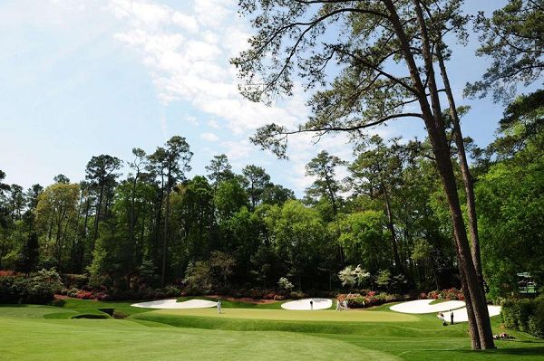 奥古斯塔国家高尔夫俱乐部——美国佐治亚州奥古斯塔镇;第13洞:标准杆5杆,510码 虽然这个洞有着超级的风险/回报共存的风格特性,但是在春天里,整个地球上恐怕哪里都找不到比这个洞更美丽的内陆洞了! 高大的松树、一片杜鹃花的海洋、雷氏小溪还有那4个震撼人心的周边沙坑,一旦你亲身目睹,这一切都将永远地铭记在你的脑海中。