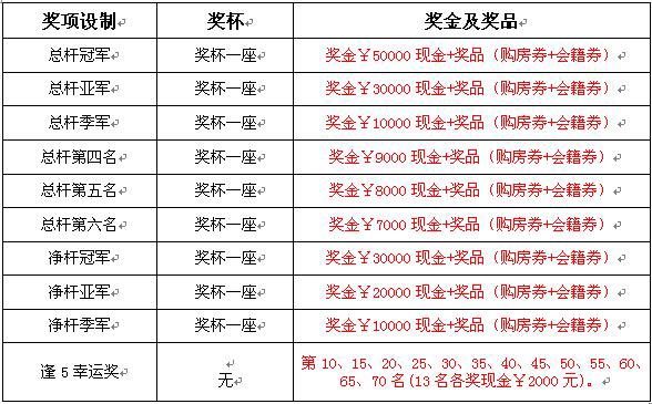 挑战赛将持续至2013年3月31日,2013年4月份举行总决赛。本次挑战赛奖品丰厚,“总杆冠、亚、季军”的奖品分别书是:现金5万、3万、1万元元,并有美岭湖购房优惠券以及高尔夫球会籍券,最高奖项则是50万元高尔夫公寓一套,一杆进洞者更是可以的获得高级轿车一辆。本次高尔夫挑战赛以高尔夫标准杆72杆名义,对全球广大高尔夫球爱好者发出邀请,经比赛产生出72名优秀球手角逐大奖,到美岭湖赴一场高尔夫的盛宴。