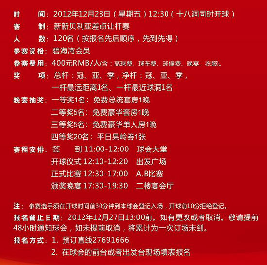 深圳碧海湾高尔夫2012会员年度总决赛报名