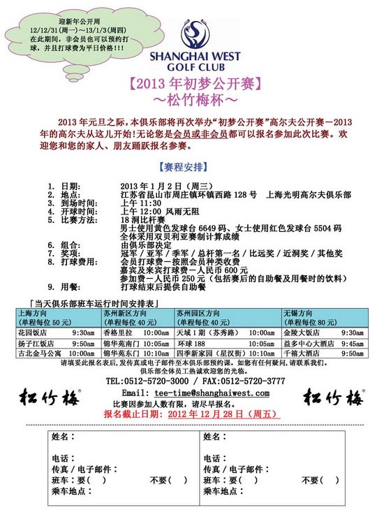 上海光明高尔夫俱乐部2013年初梦公开赛1月2日举行