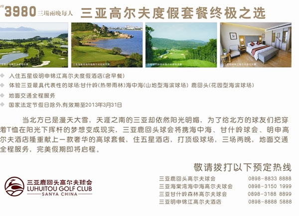 3980/3晚2场球 海南三亚鹿回头高尔夫球会推套餐