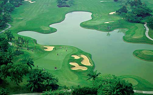 我们的第一个18洞被安排在金卡莲高尔夫俱乐部(Cengkareng Golf Club)。建于1999年的球会仅仅与雅加达最繁忙的机场——苏加诺-哈达国际机场一墙之隔。在球会的宣传册里有这样一句话:“在你的飞机触地后45分钟,你就可以到这里开上第一杆。”离机场跑道最近的是球场的2号洞到4号洞。在这里,飞机以平均3分钟一架的频率从你的头顶呼啸而过。