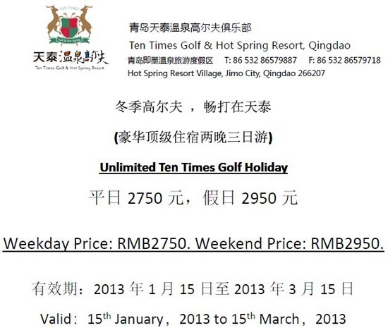 2750元/36洞 青岛天泰温泉高尔夫冬季畅打