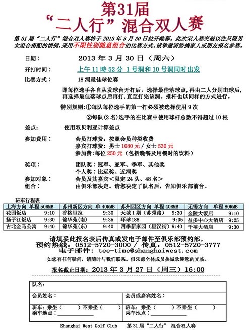 上海光明高尔夫第31届“二人行”混合双人赛报名