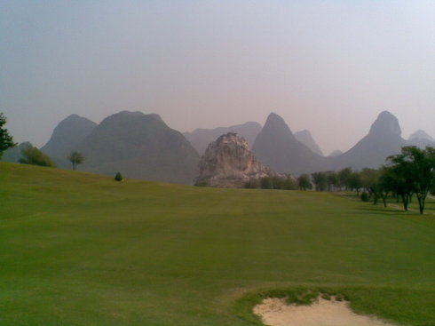 由于头晚在酒店的阳台上喝了一晚的漓江啤酒,上午在宿醉未醒的状态下来到球场,开始了新的高球体验。