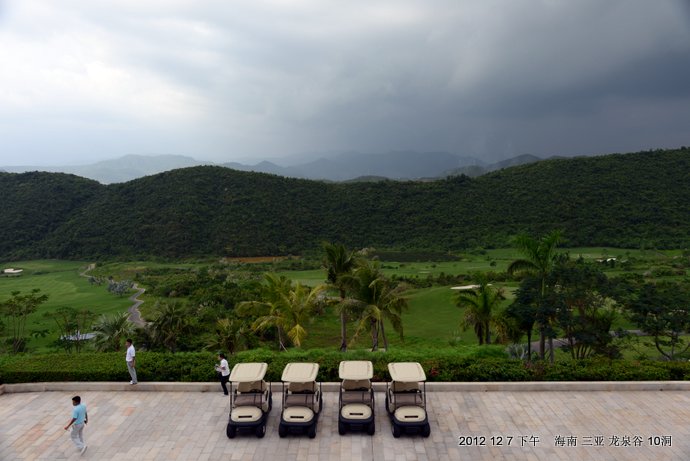 飞机有点晚点,到三亚已是下午2点多,就直奔里机场较近的龙泉谷球会。以前打过这个球场,当时它的第19洞还在修建中,这次准备好好打一场球,无奈天公不作美,才打了了两个洞就哗哗的下起大雨,赶紧跑回会所避雨。雨一直下,没有停的意思,望望我的朋友,依然是打球心切,于是等雨小了一点就冲进了球场,赶在天黑之前打了10个洞,包括那个传说中的第19洞。
