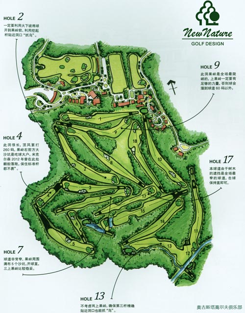 2.避开12个凶险球道中间沙坑,如1号洞、2号洞、5号洞、7号洞、8号洞、18号洞,以扎实的中长铁式球道木杆上果岭以弥补距离产生的劣势;