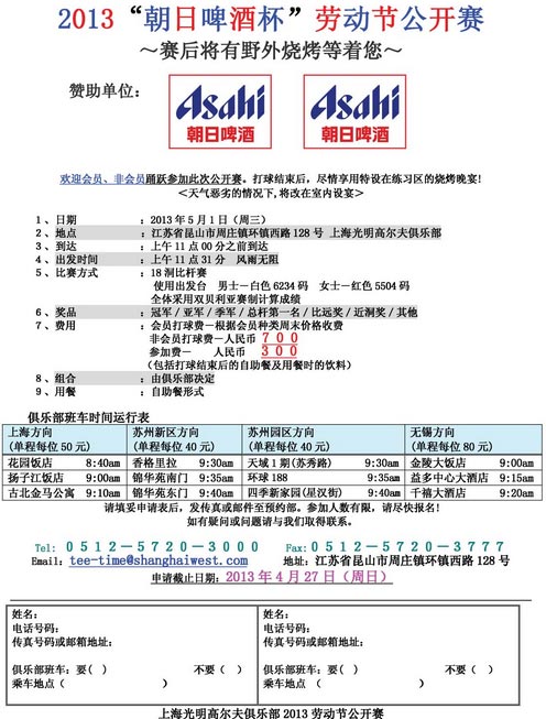 上海光明高尔夫俱乐部2013劳动节公开赛5月1日举行