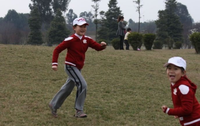 我们又在海棠花旁边的小草上玩。玩着玩着,我突然发现了一个小山坡。我连忙跑到山坡上喊:“超级小子弹!”然后就从山坡上冲向站在山坡下面的妈妈。妈妈看见了,连忙给我拍照。因为我跑的太快,所以妈妈只拍了几张我就跑过了妈妈。我跑完后就是妹妹跑。妹妹的动作和我的动作一模一样,就是速度慢了一点。