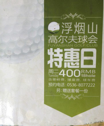 400元/18洞 山东潍坊浮烟山高尔夫周二特惠