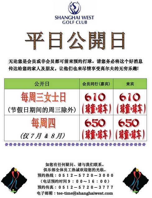 610元/人 上海光明高尔夫平日公开日优惠