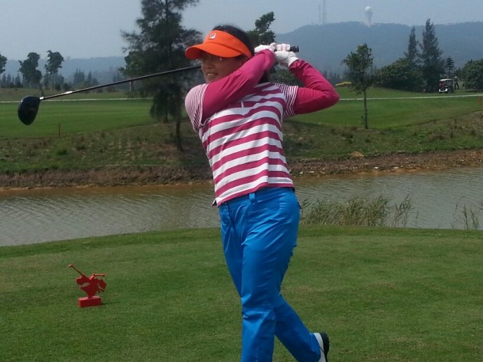 这位大姐的挥杆姿势可不是做秀,一杆出去随便都是两百多码!成绩么,基本都是80杆上下,比赛头一天还在三千海干了76杆!