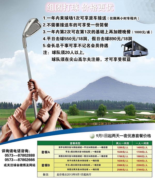 550元/18洞 海宁尖山高尔夫组团击球价格更优