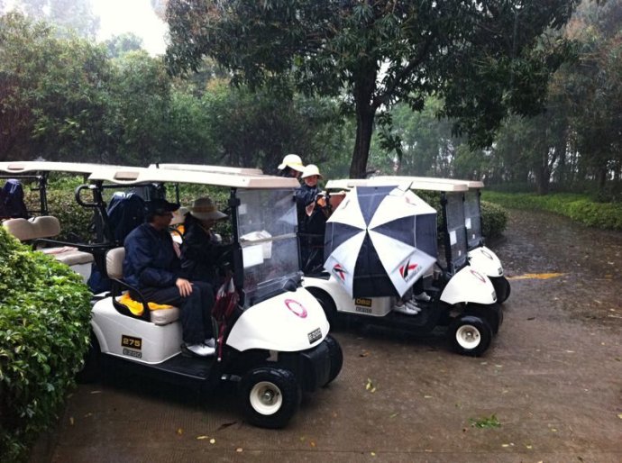 就这样在大暴雨中溜达了半圈,也算是出场了吧!不禁感慨,球童也挺辛苦的,即使**,烈日当头,也要做好我们的本质工作,就算客人没有到,依然要坚持等待,不管风里还是雨里!这就是我们的工作!