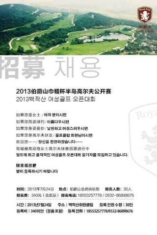 青岛伯爵山巾帼半岛杯高尔夫公开赛7月24日举行