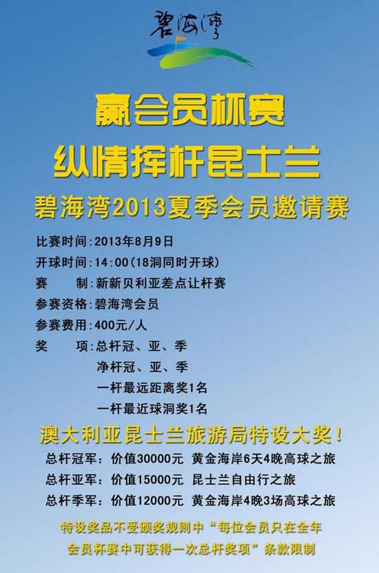 深圳碧海湾高尔夫2013夏季会员杯赛报名啦!