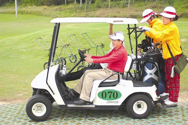 今天听说下午又有客人来打球,而且是个女的,老总的朋友,本来以为这不关我的事,没想到教练又把我拉下去,告诉我今天的服务客人,我心里好高兴,因为这意味着我可以那小费了,不过天气不好太晒了。等了半个小时终于下场了,一个洞下来,那女的打了7个球,她属于下场教球,没办法我只能等着。