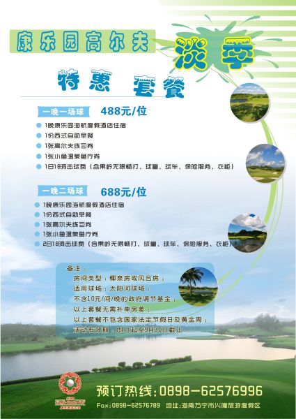 488元/位 康乐园高尔夫温泉球场淡季套餐