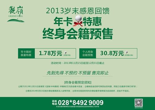 成都观岭高尔夫球会推出限时限量特惠: