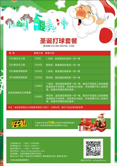 1、凡圣诞当天前30名打球者均可获赠保利高尔夫球1条,另现场圣诞美女派送什么小礼包。