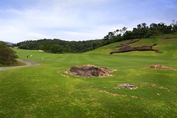 甘什岭球场属于典型山地灌木球场,与广东很多球场相似,是难度较大的一类。距离不是问题,方向落点才是关键,果岭比较复杂,有你肉眼看不见的潜伏暗线和坡度,读不懂的话很可能从果岭上推到果岭外。OB的几率很大,视觉上对距离和角度的误判,小白球进树林比小白领进超市还容易。一旦球进入灌木树丛,要果断的原地补打,千万别去侥幸救球,否则会越搞局面越复杂。。。