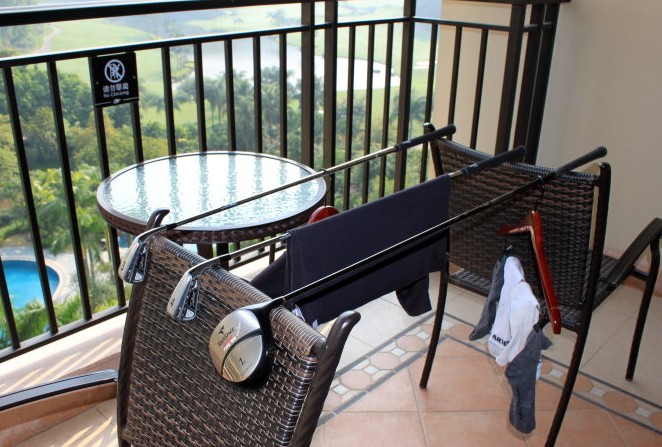 每次出差在外,带着球包,给你们看看那球杆用得最多最真实的一面吧:晾衣架!