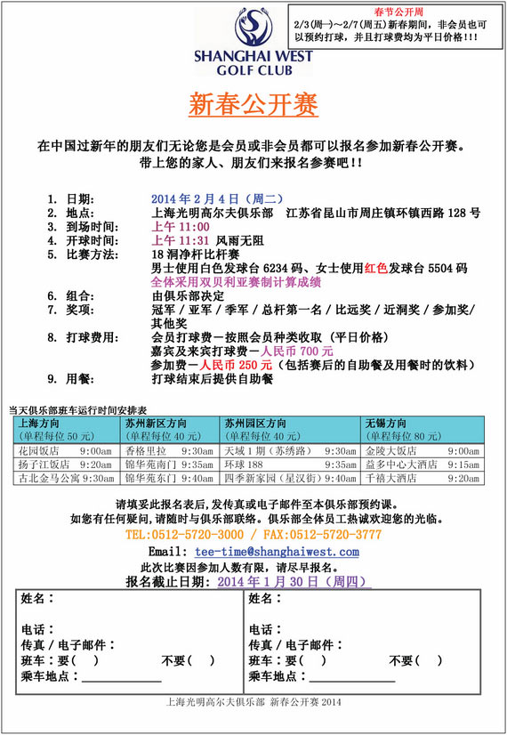 报名-上海光明高尔夫2014年春节公开赛