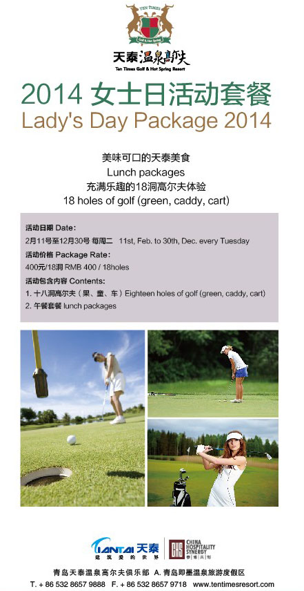 400元/18洞 青岛天泰高尔夫2014年女士活动日