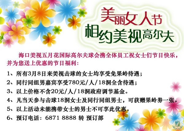 免果岭费 海口美视高尔夫“三八妇女节”优惠
