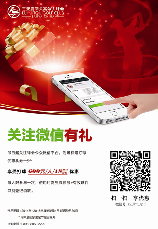 600元/18洞 三亚鹿回头高尔夫球会微信平台优惠