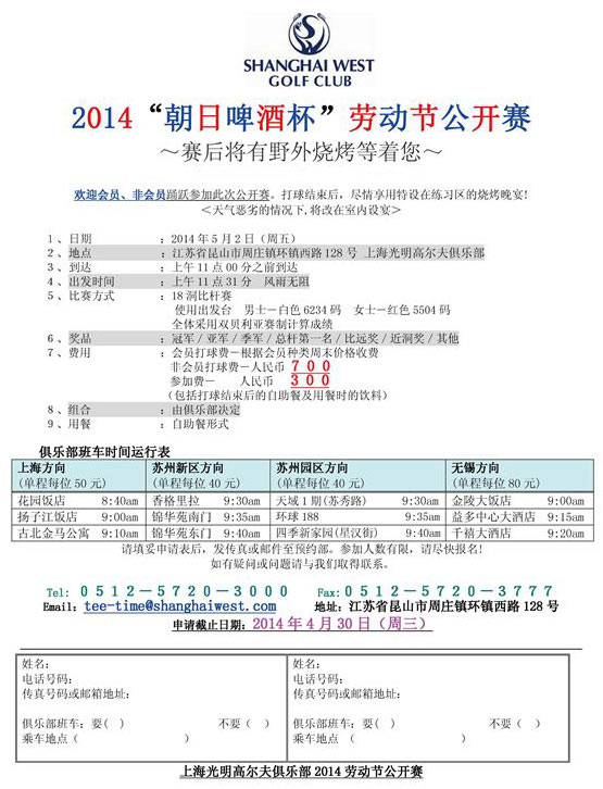 报名-上海光明高尔夫俱乐部2014年五月公开赛