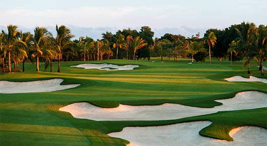 多拉高尔夫度假村的老板唐纳德·特朗普拉上设计师吉尔·汉斯,为著名的蓝魔球场增添了大量水障碍,以及防不胜防的 “魔牙”。