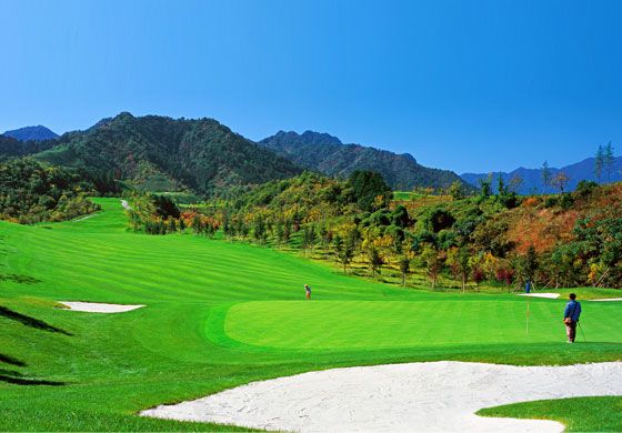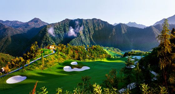 高尔夫球场地处秦岭山脉深处,国际标准的18洞山地高尔夫球场,球道窄险,地势陡峭,风景无限,尤以山缝开球的7号洞最能代表本球场特色。